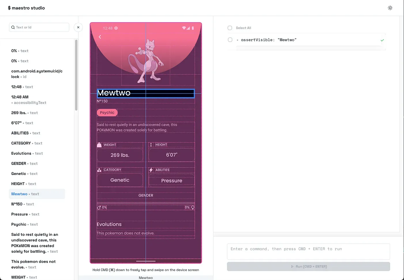 The tests for Pokedex were written using Maestro Studio.