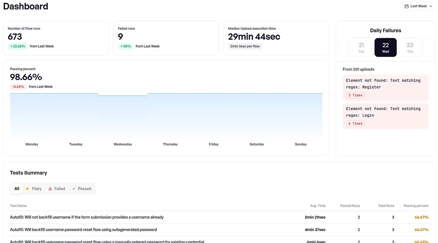 By far, the thing we’re most proud of this month. It’s been a while coming, but organizations can see a whole bunch of nerdy but useful stats about recent test executions, including total usage, averages, success rates per flow, and all sorts. We’re far from done, and this will get better and better.