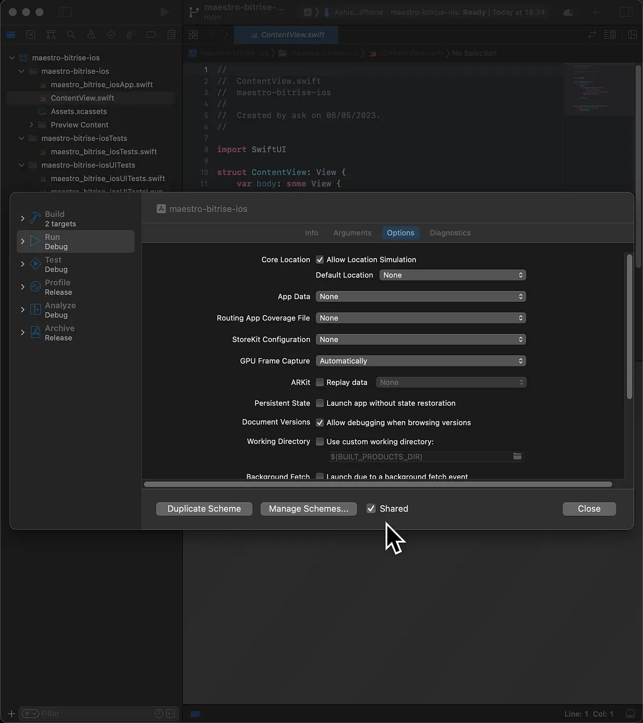 2. Go to Edit Scheme and make sure your scheme is shared.