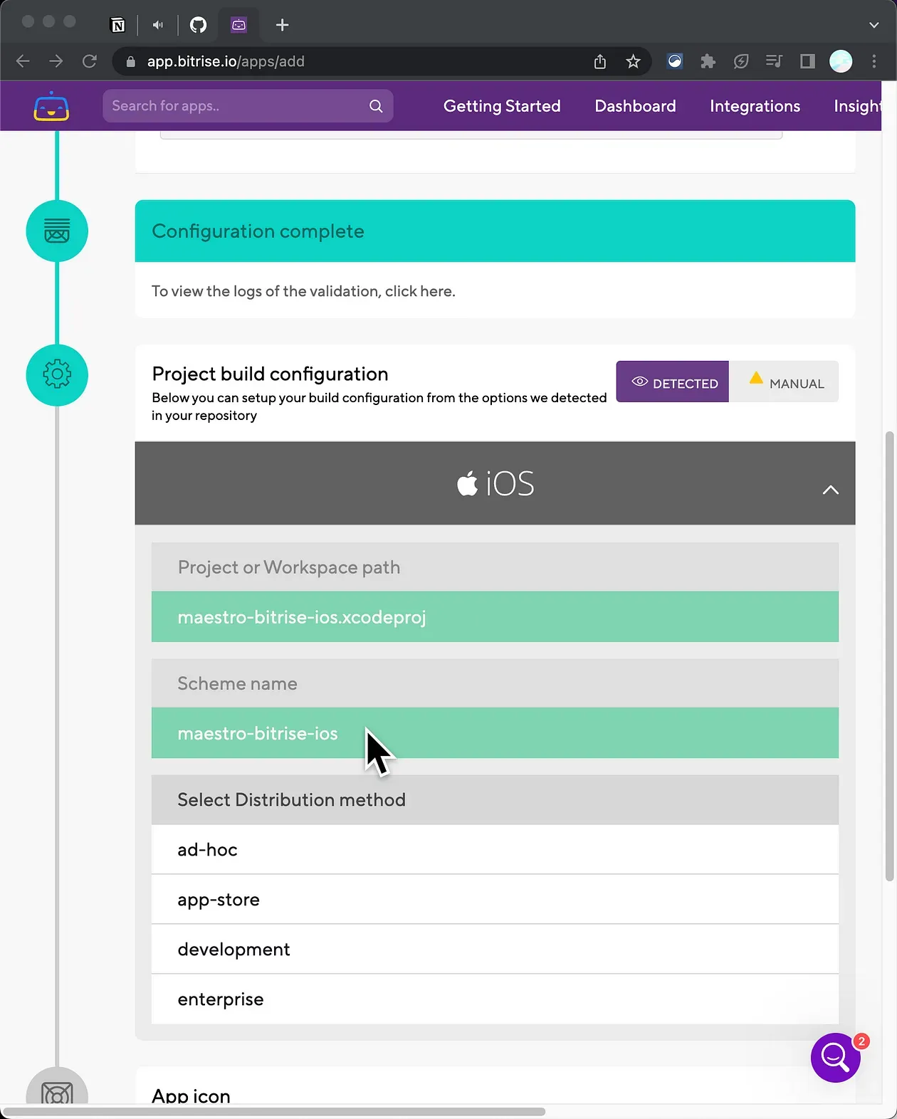 1. Go to Bitrise and add the GitHub repo of your iOS app.