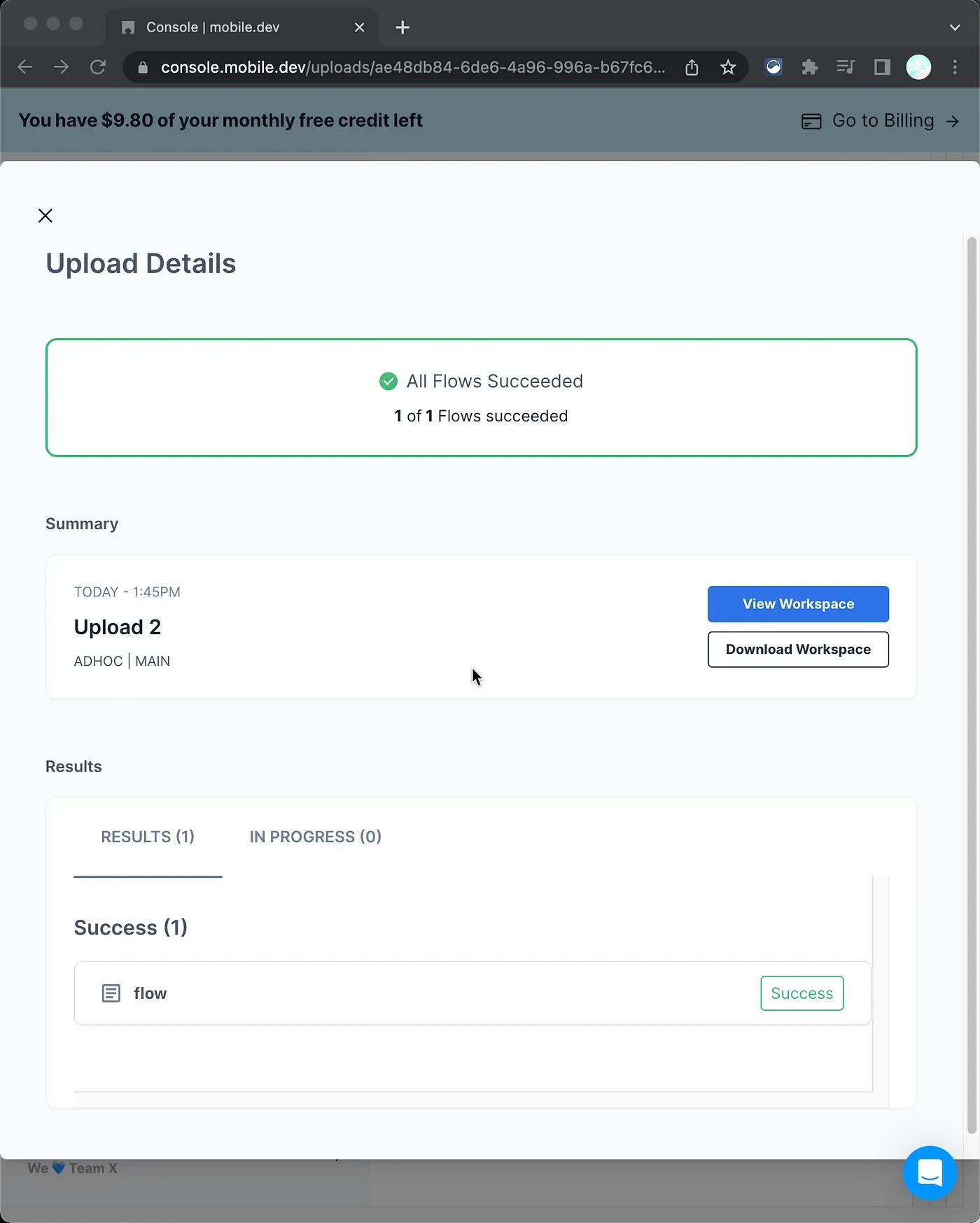 6. After the build process is completed on Bitrise, your Flows will be sent to Maestro Cloud. To observe the Flows, head over to the Maestro Cloud Console.