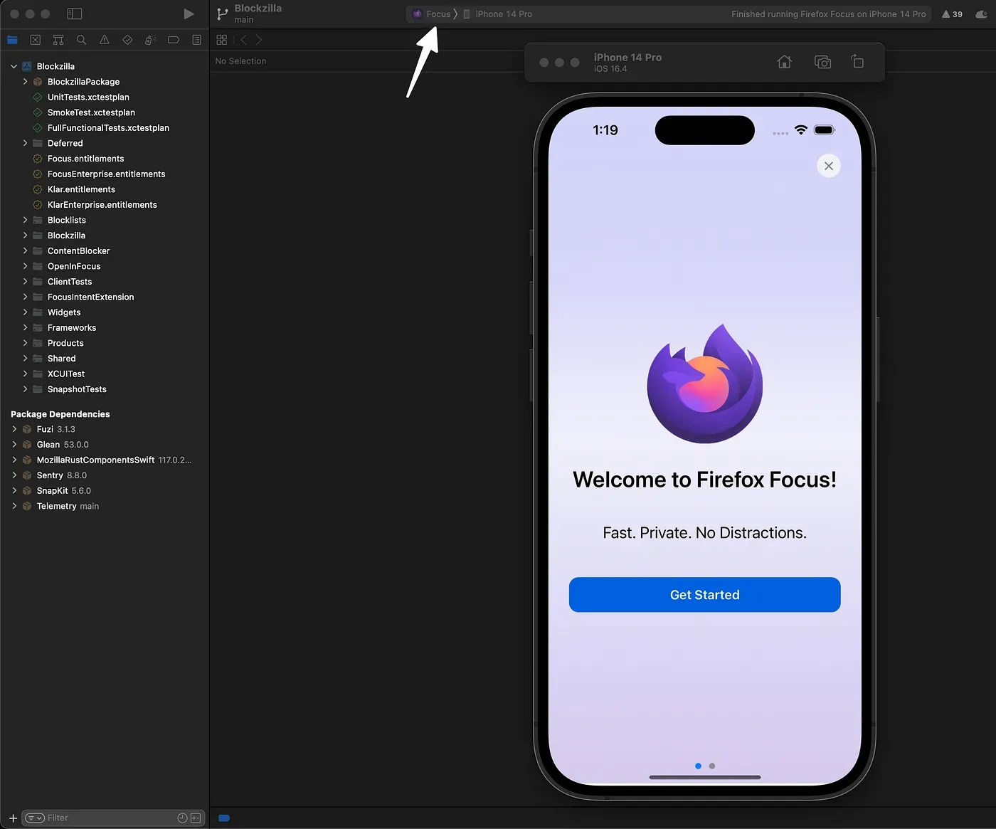 Then, open Blockzilla.xcodeproj in Xcode and build the Focus scheme.