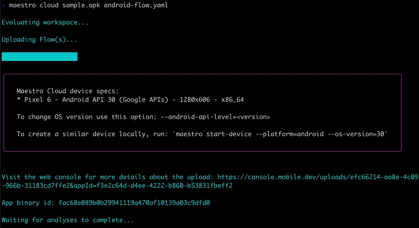 - Enhanced Feedback: The CLI now displays cancellation reasons (when available) from Maestro Cloud and showcases the device type during cloud operations.